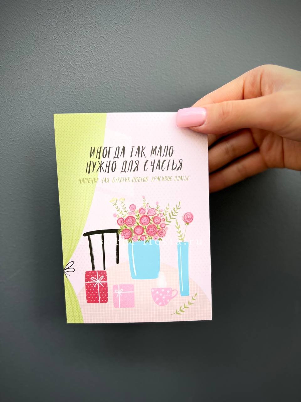Если хотите что-то особенное — подобрать дизайнерскую открытку или добавить персональное послание — можно в разделе поздравительных открыток.