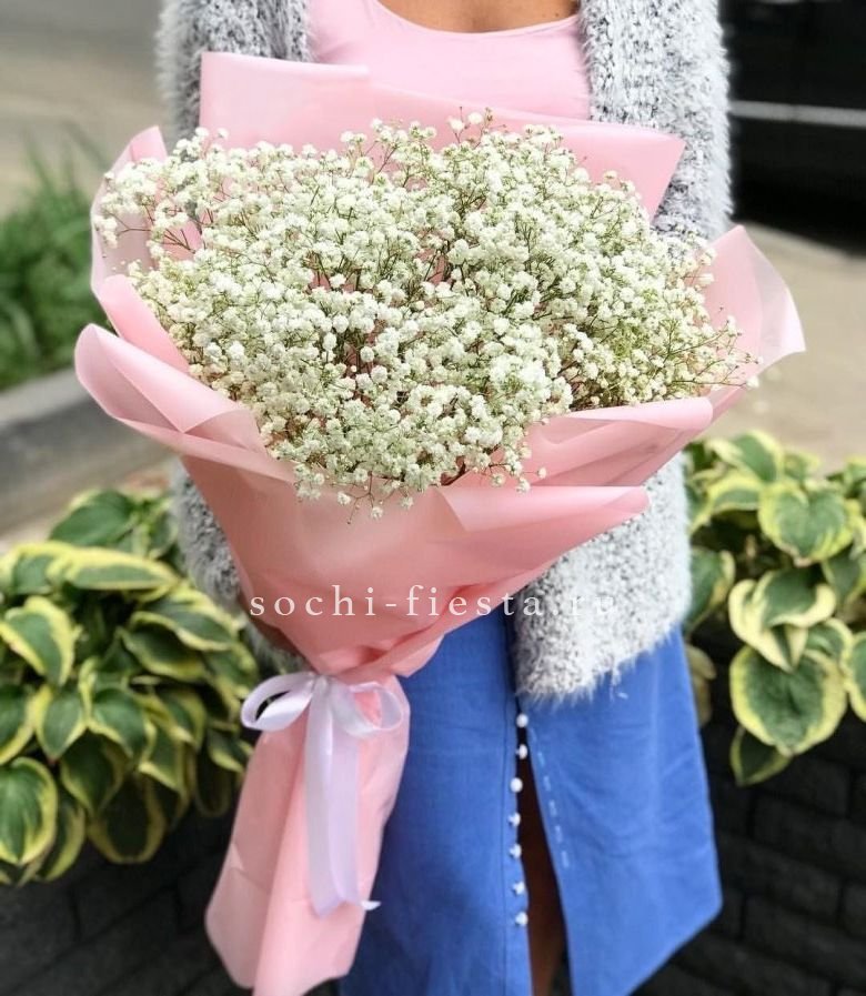 25 белоснежных голландских гипсофил, лента, упаковка.