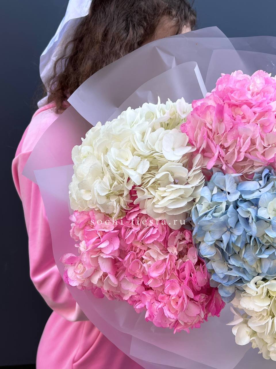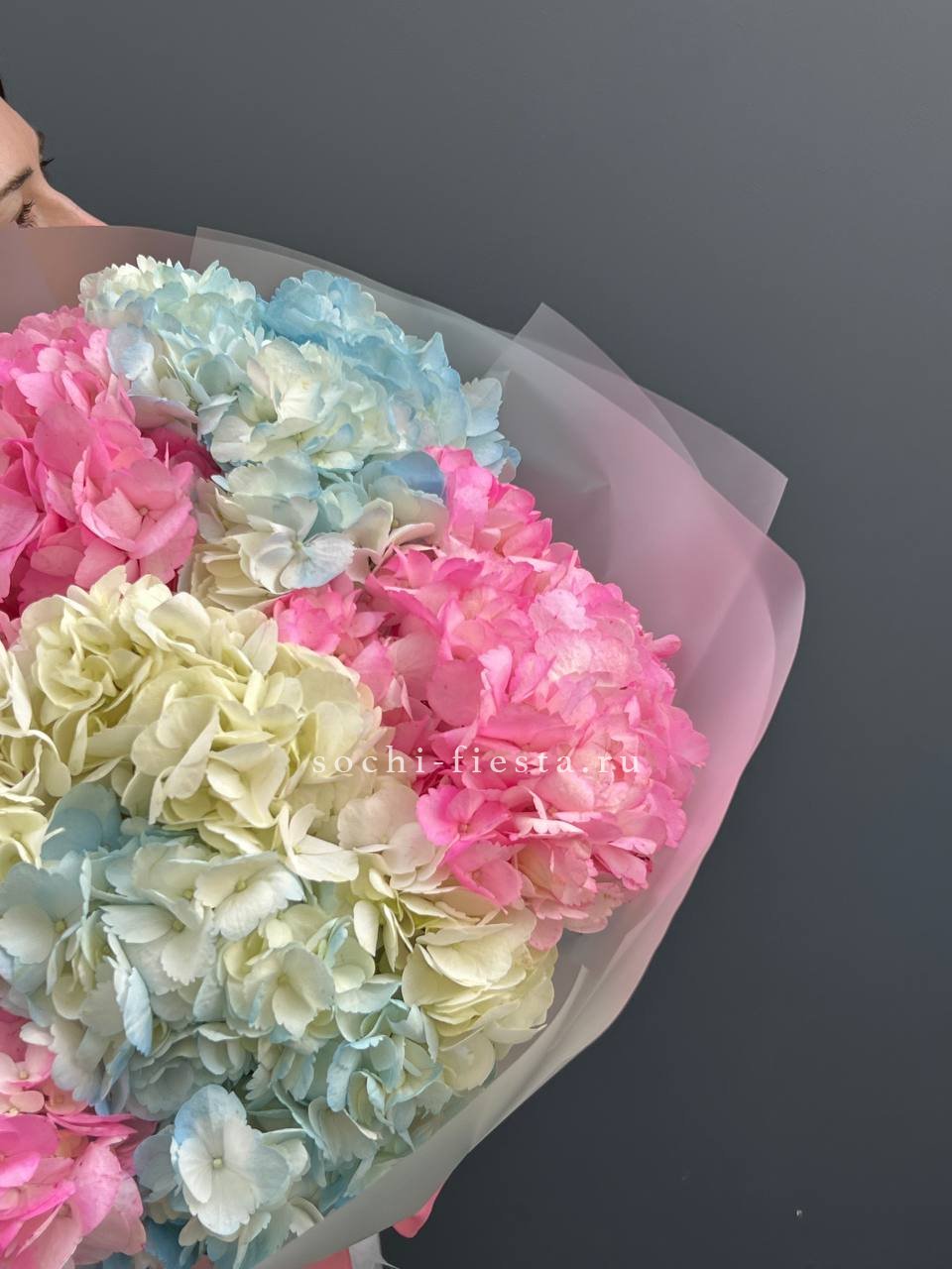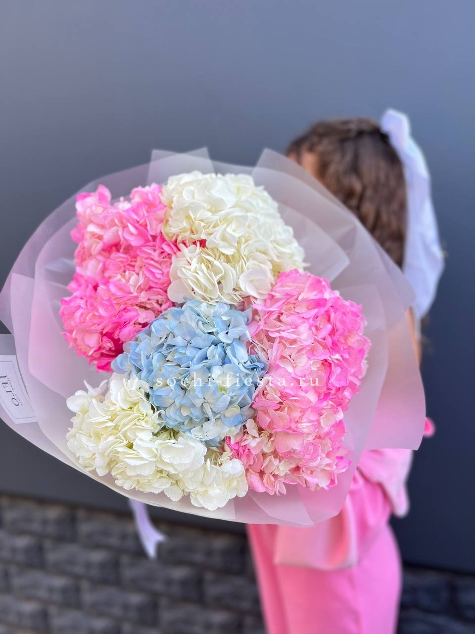 гортензия - 7 шт., лента, дизайнерская упаковка.