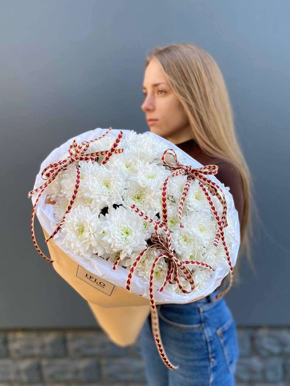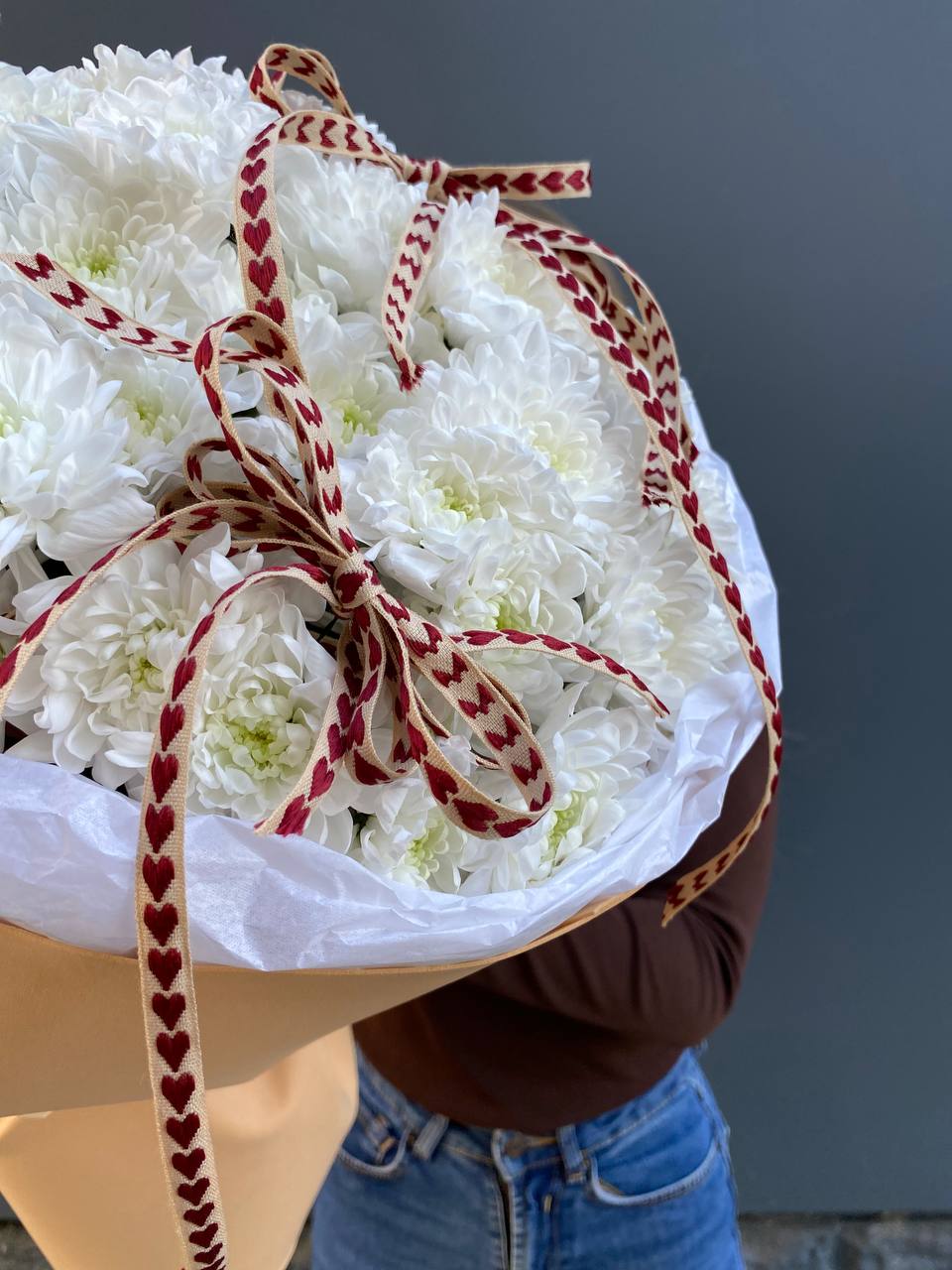 хризантема кустовая - 15 веток, лента, дизайнерская пленка.
