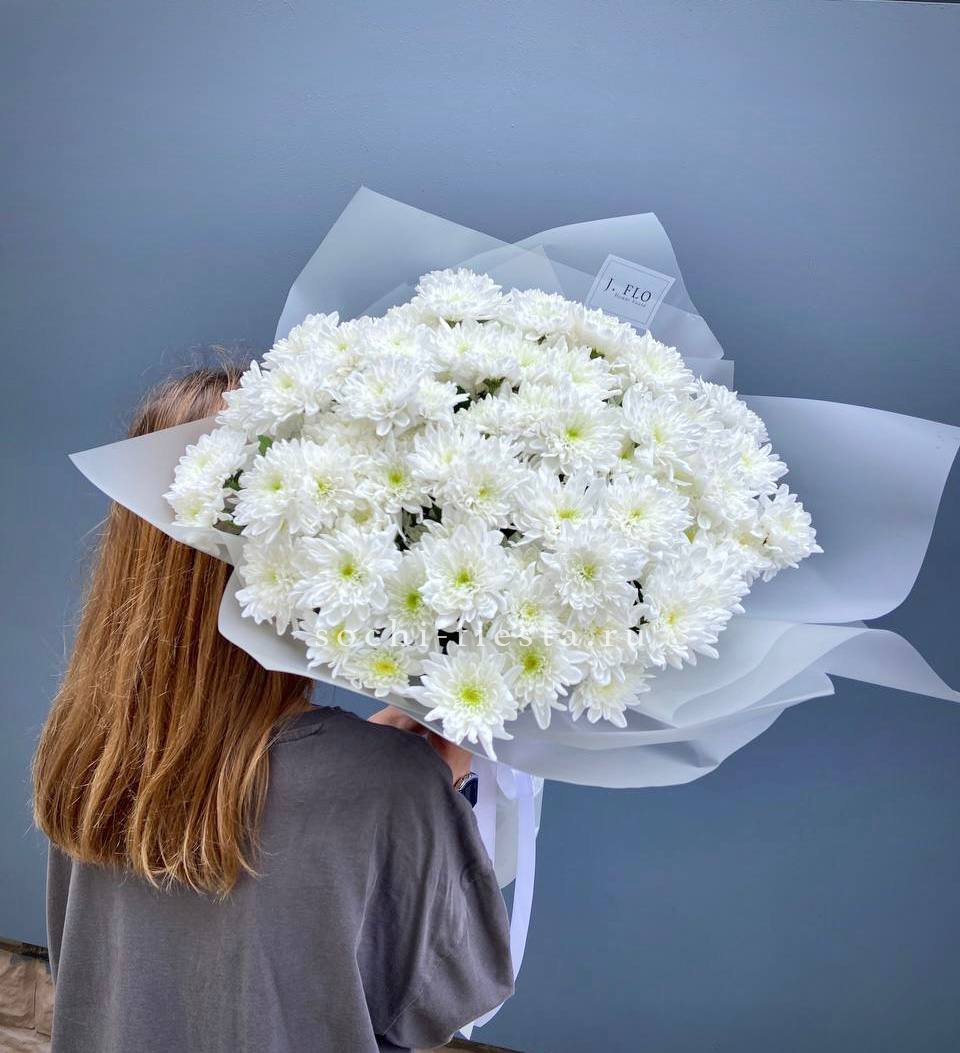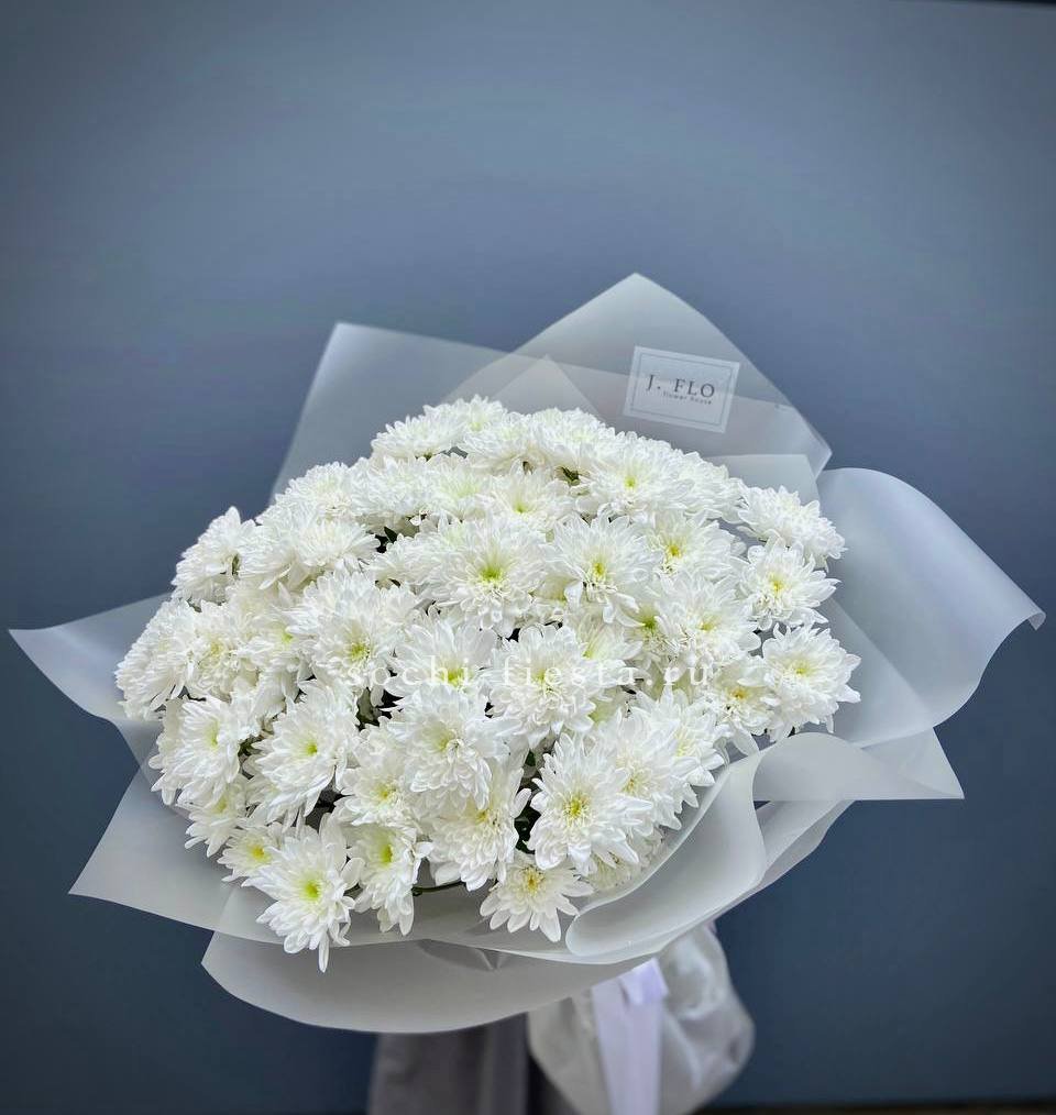 хризантема одноголовая - 9 шт., лента, дизайнерская упаковка.