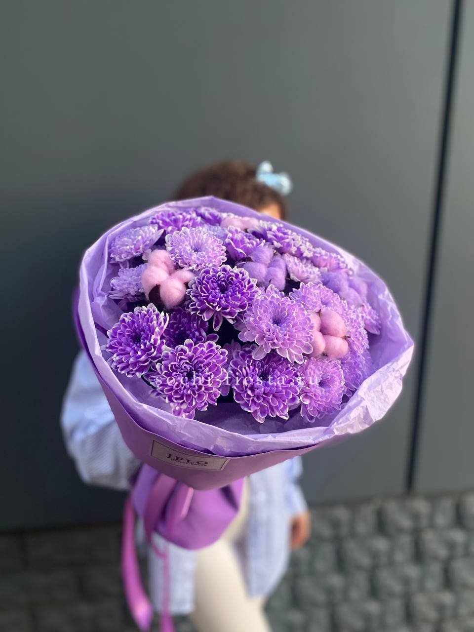 хризантема кустовая - 5шт., хлопок-5, оформление, лента.