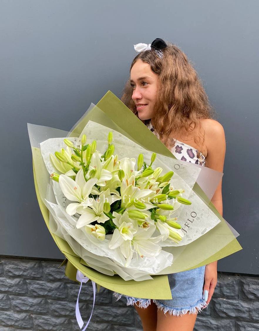 51 лилия, лента, оформление фоамиран (или по согласованию с клиентом).