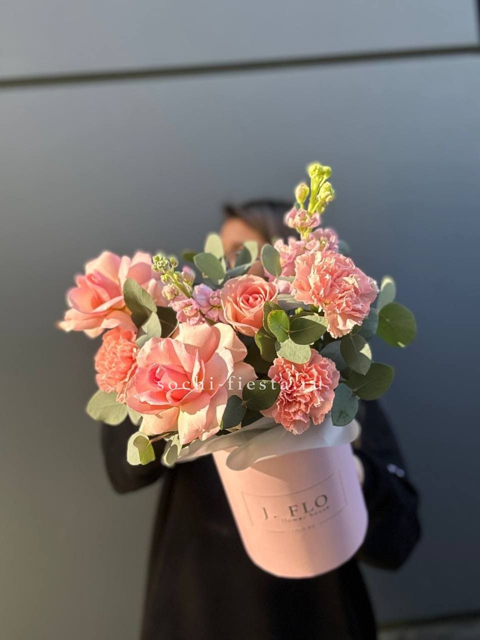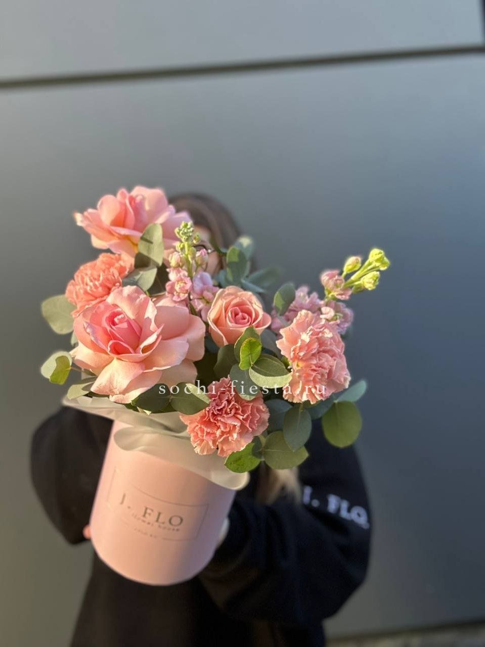 гортензия, розы, озотамус, диантус, бомбастик, хлопок, хризантема бокс 16.