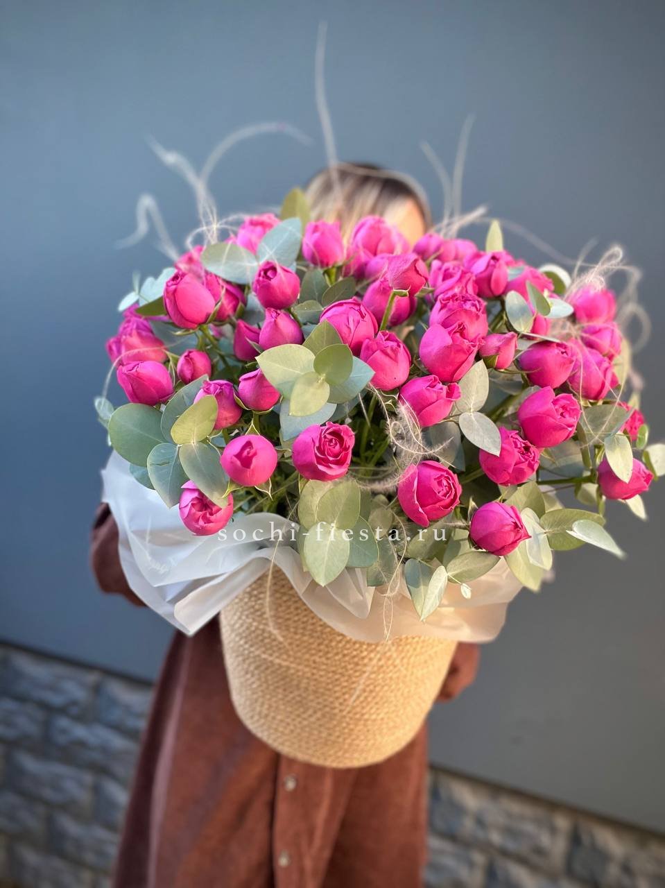 Для заказа товара "Пионовидные розы в джутовом кашпо " с доставкой в Саратове нажмите в корзину