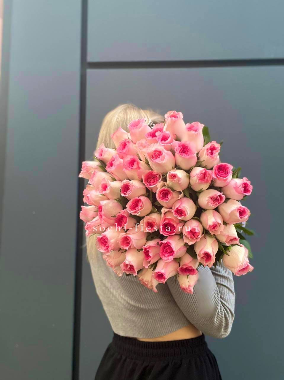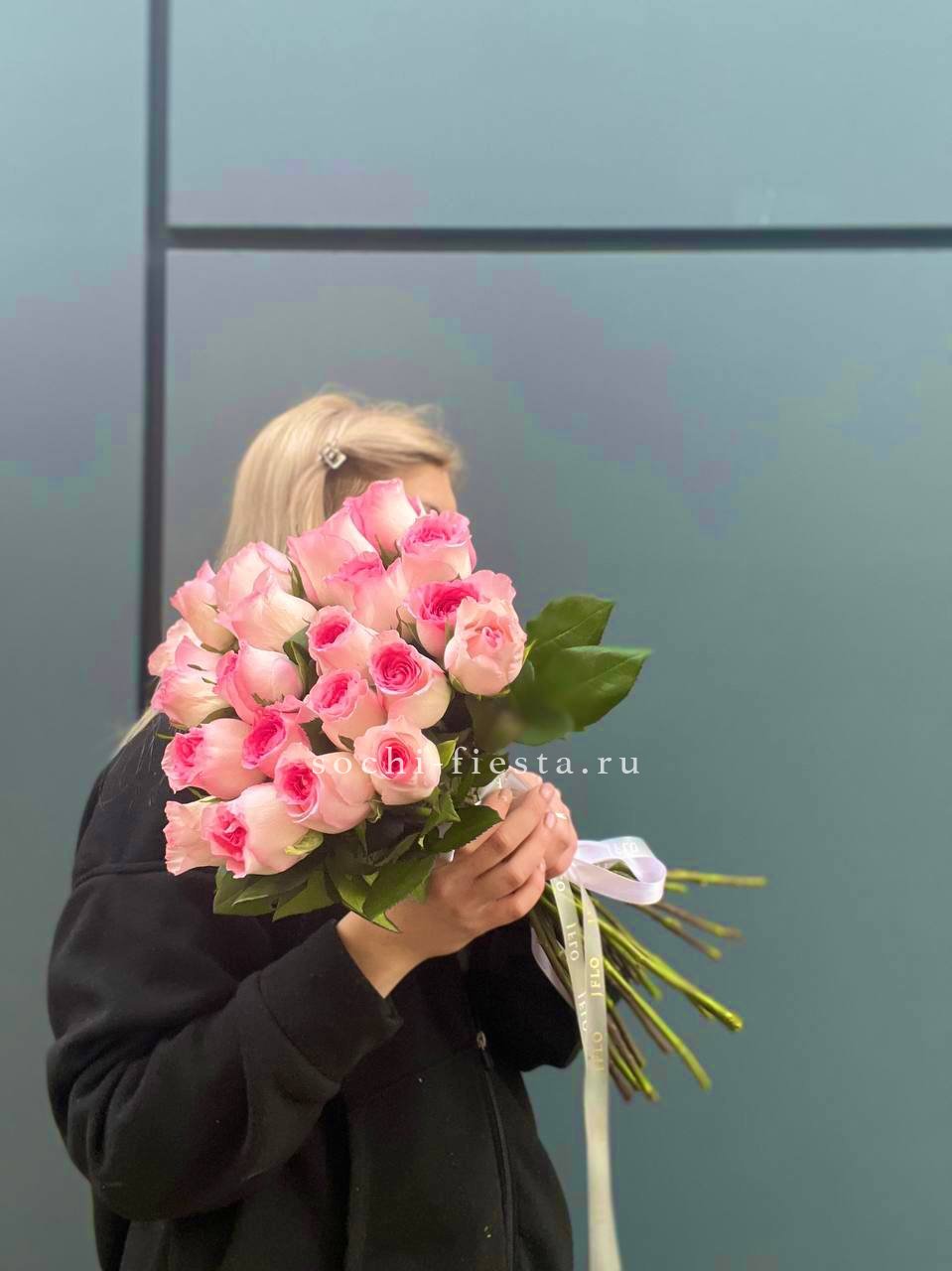 Состав букета на фотографии: 29 роз карина, крафт, лента