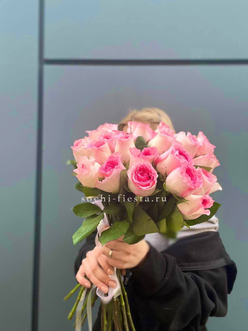 101 розовая роза, лента, упаковка на выбор.