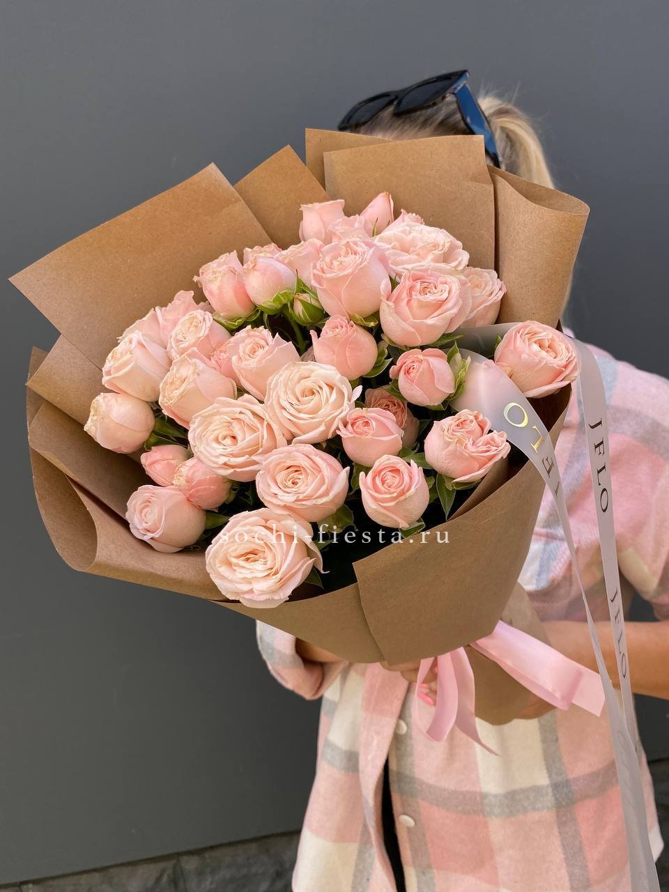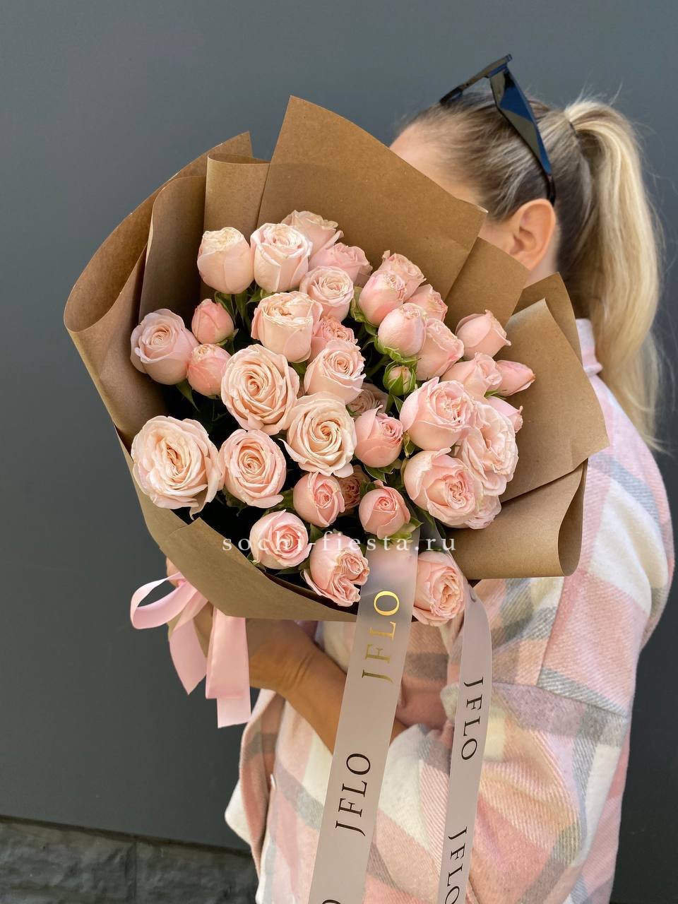 13 кустовых роз Bombastic, лента, дизайнерская упаковка.