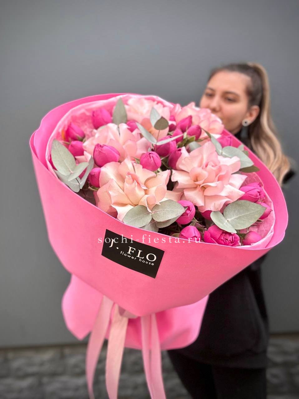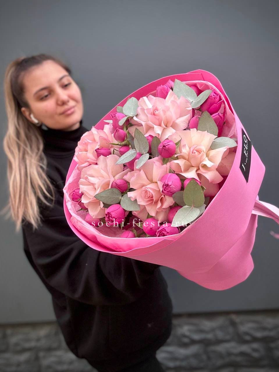 Для заказа товара "Букет французских и пионовидных роз "Ламиносо"" с доставкой в Саратове нажмите в корзину