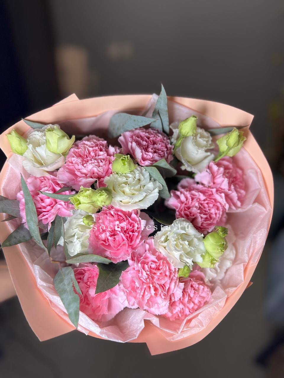 Для заказа товара "Букет гвоздик и эустом "Сири"" с доставкой в Саратове нажмите в корзину